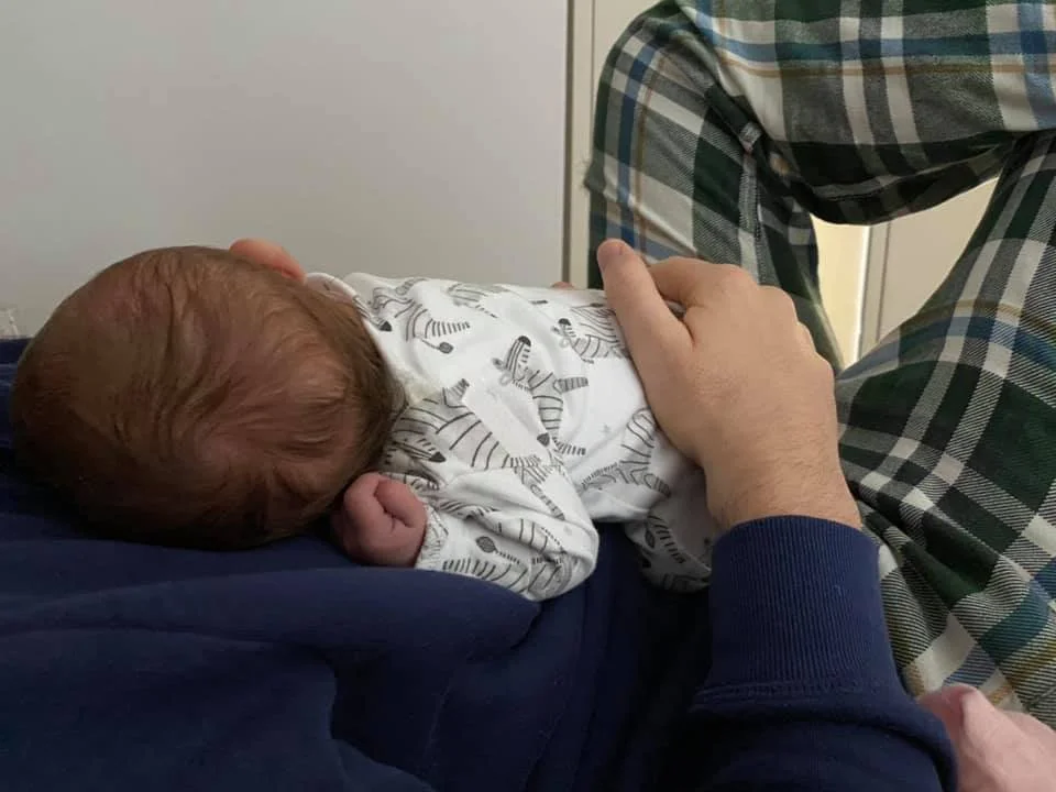 We aren’t putting our daughters face on the internet (I want her to be able to choose when she gets older) but Adaline was born at 8lb 9oz (lovely little chunck) and here she is enjoying tummy time on Daddy’s tummy!